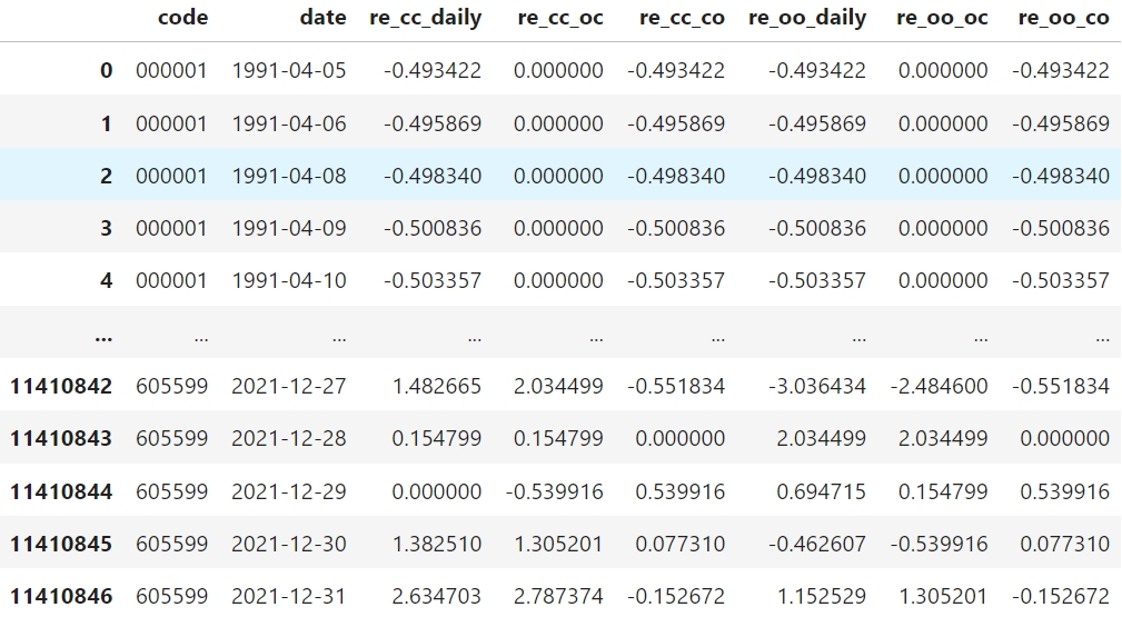 re_cc_daily, re_cc_co, re_cc_oc, re_oo_daily, re_oo_oc, re_oo_co分别对应\(R_t^{CC}, R_t^N, R_T^D, R_{t+1}^{OO}, R_t^D, R_{t+1}^N\)