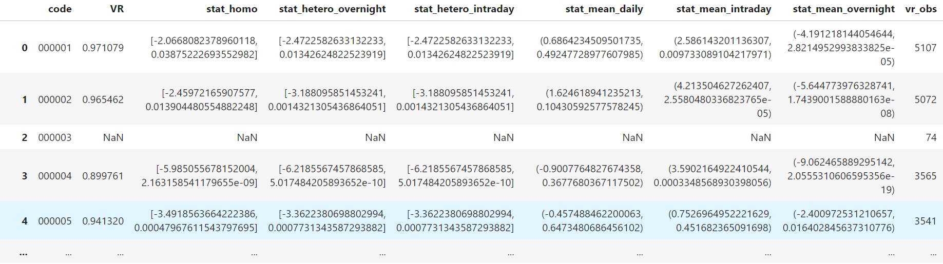 函数的参数code代表股票代码,log_daily_rets表示日度收益率序列,log_intraday_rets表示日内收益率序列,log_overnight_rets表示隔夜收益率序列,obs_limit表示最小观测值限制
